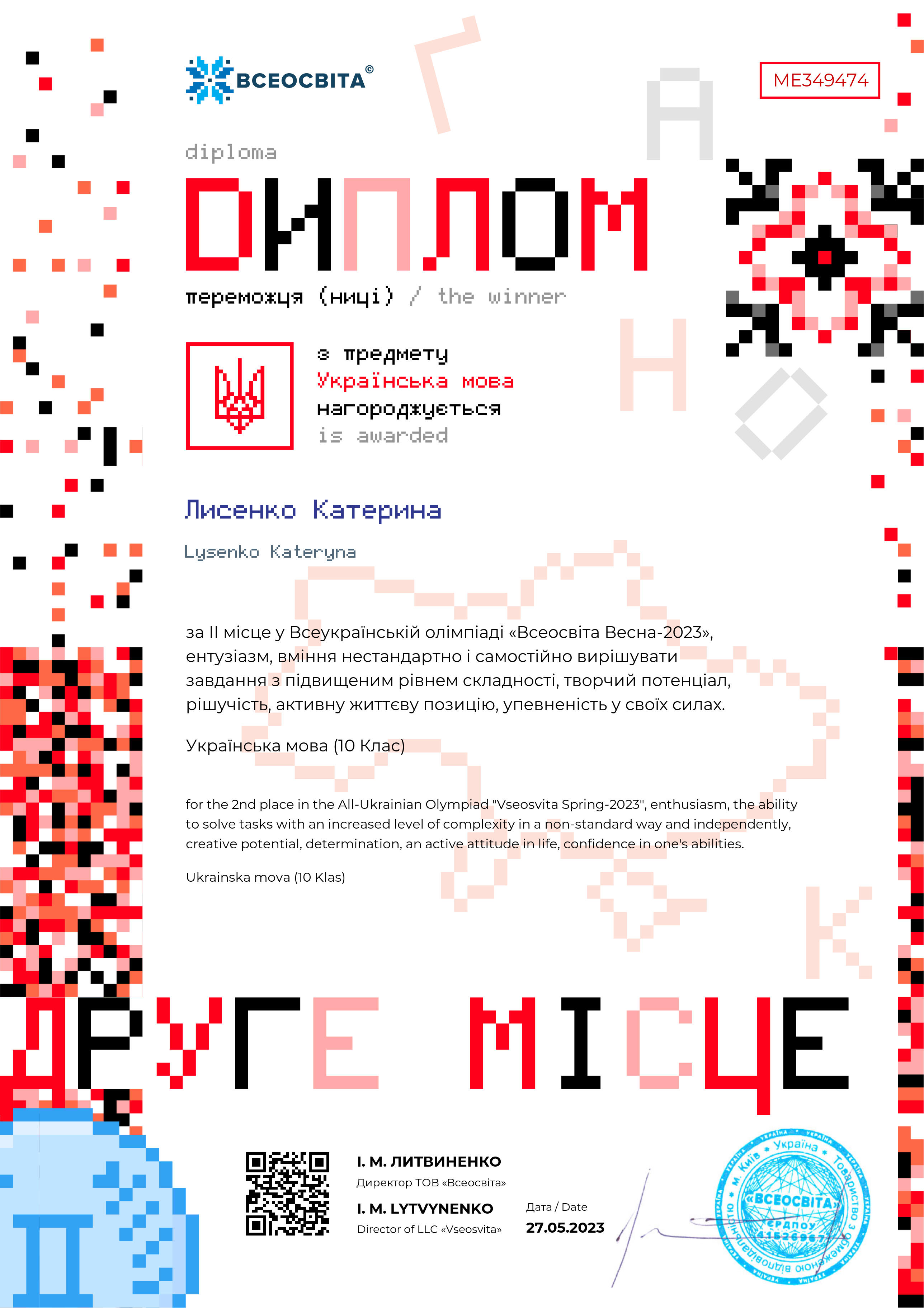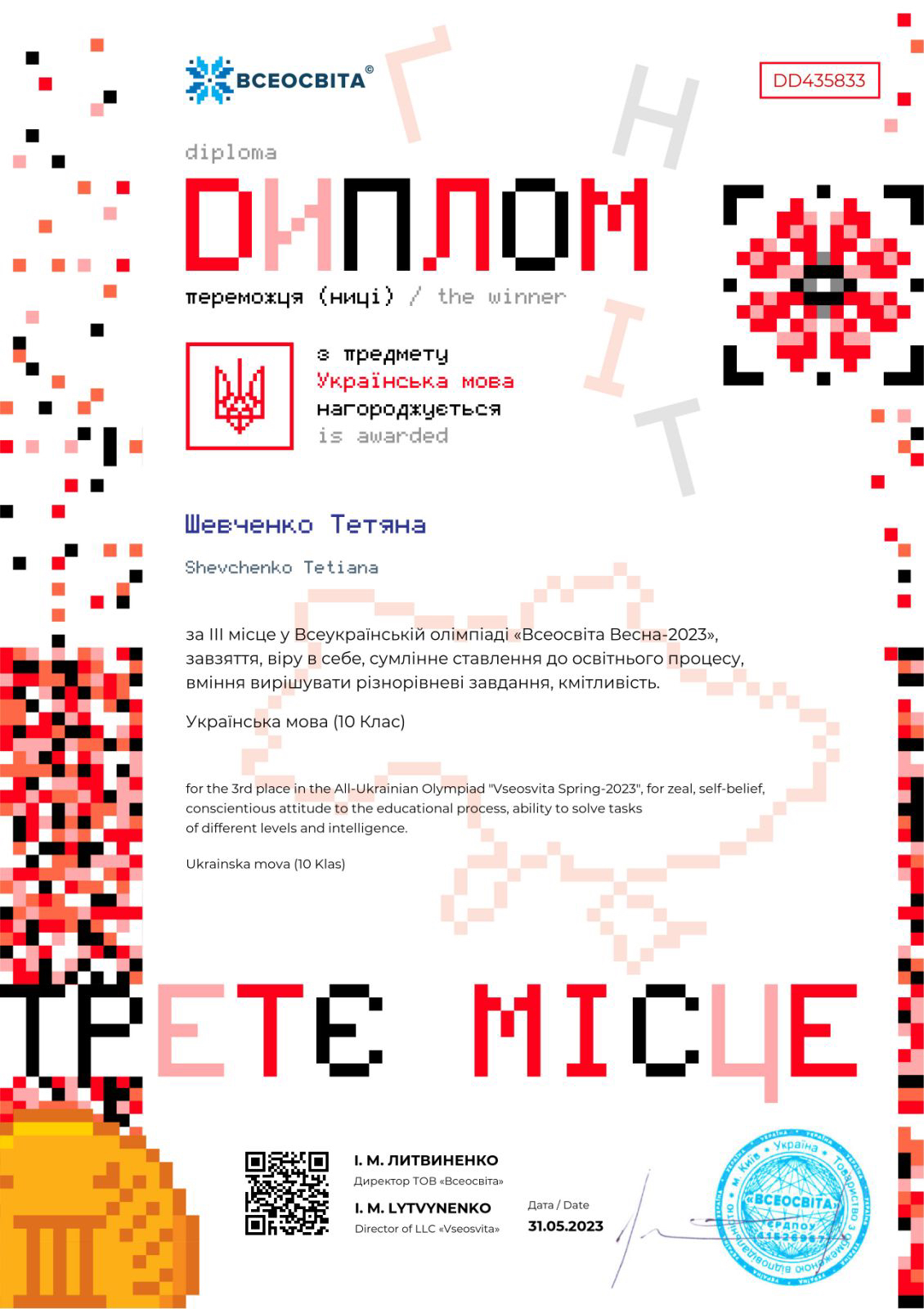 31 травня 2023 року підбито підсумки всеукраїнської дистанційної олімпіади «Всеосвіта Весна – 2023» з української мови. Організатори – національна освітня платформа «Всеосвіта». За результатами олімпіади дипломами переможців нагороджені першокурсники ВСП «Фаховий коледж МНУ імені В. О. Сухомлинського»: