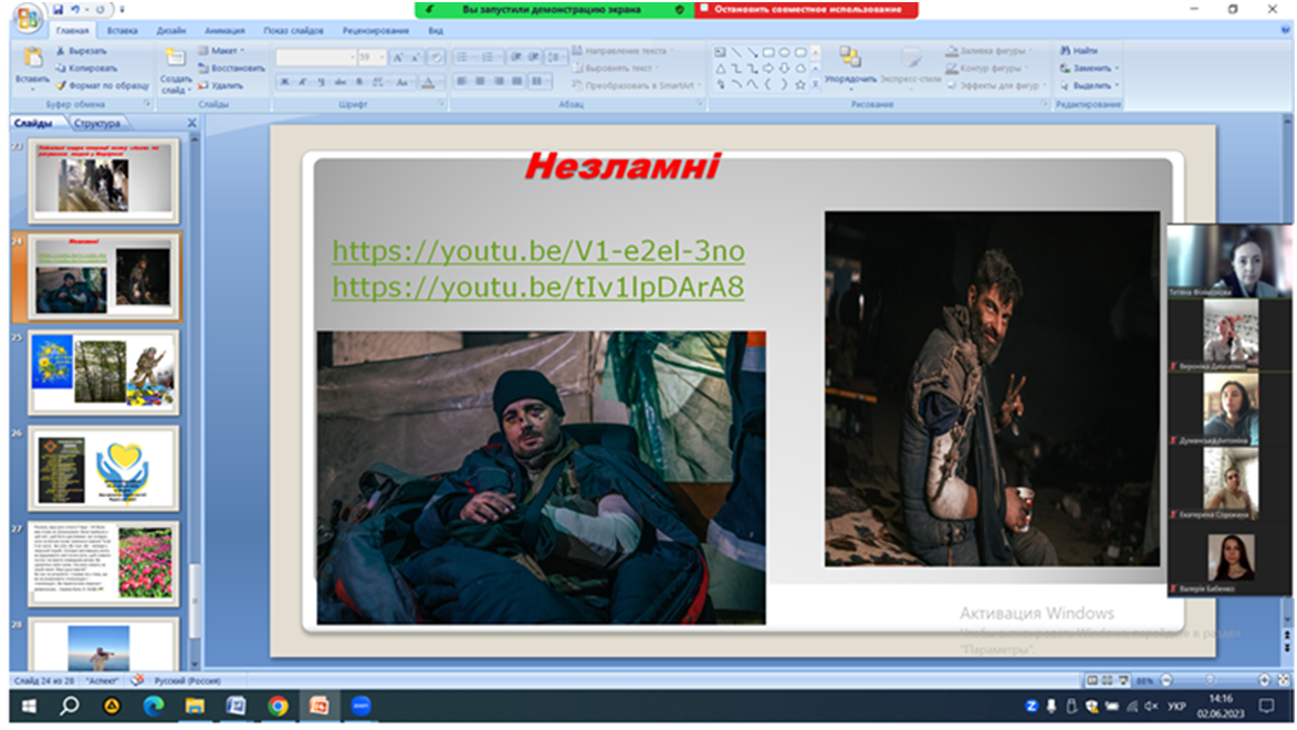 2 червня 2023 року к. пед. н., ст. викл. кафедри початкової та дошкільної освіти Т. В. Філімонова зі студентами І курсу спеціальності 013 «Початкова освіта» провела патріотичний захід «Героїв країна – моя Україна!».
