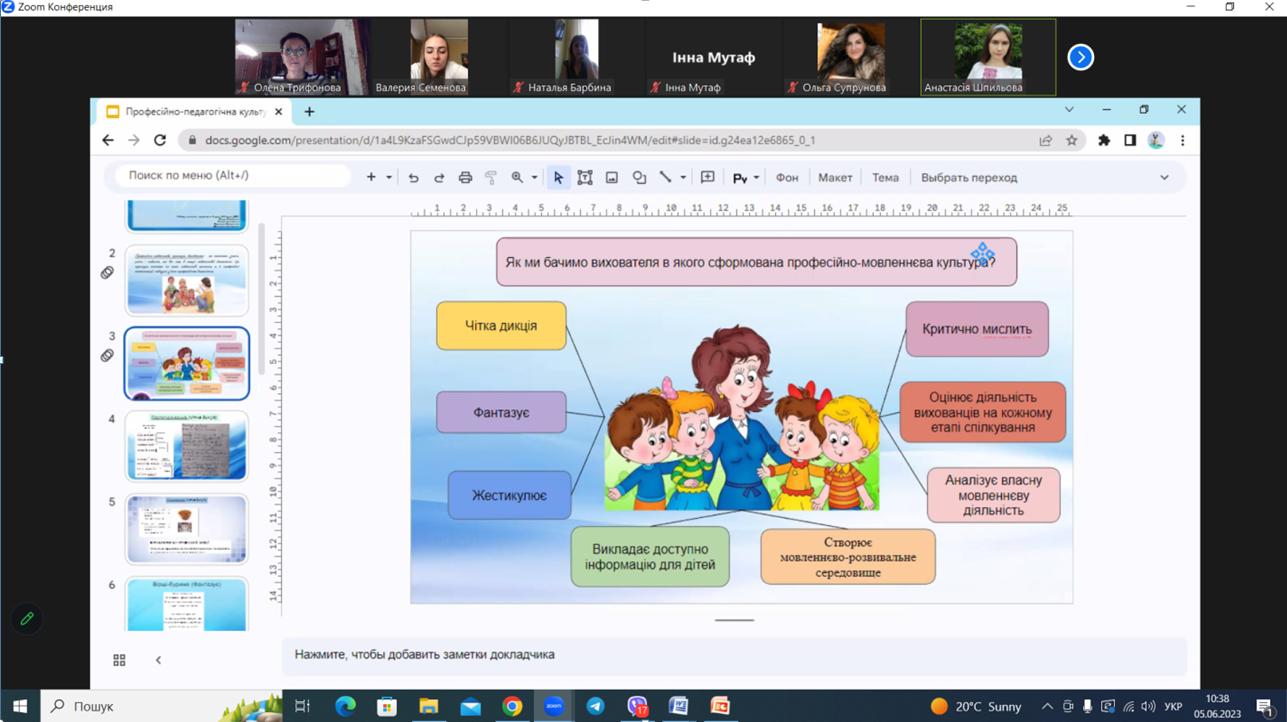 - Професійно-мовленнєва культура майбутнього вихователя: презентація результатів вивчення дисципліни «Риторика, культура та техніка мовлення вихователя» (здобувач другого (магістерського) рівня вищої освіти Інна МУТАФ);