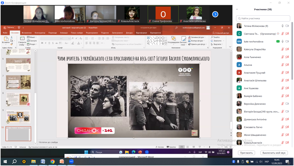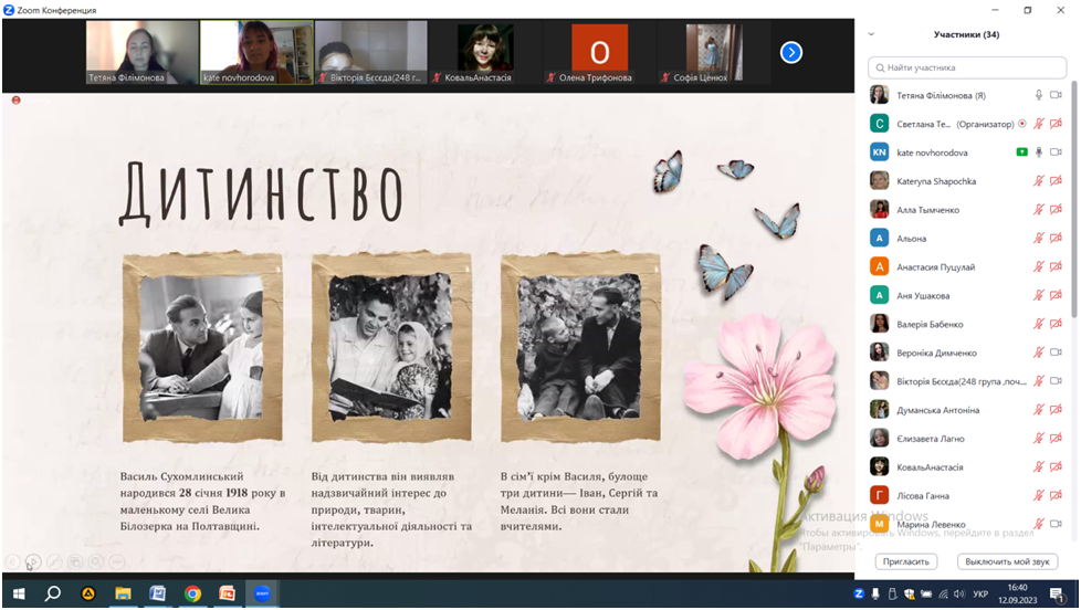 Учасники заходу обговорили життєвий і творчий шлях великого педагога, основні принципи педагогічної системи В.О. Сухомлинського, його ідеї в контекстi сучасної освiти. Звернули увагу на те, що основні компоненти формули НУШ ґрунтуються на положеннях письменника, пригадали «10 правил: чого не можна робити» за словами В.О. Сухомлинського та багато іншого.