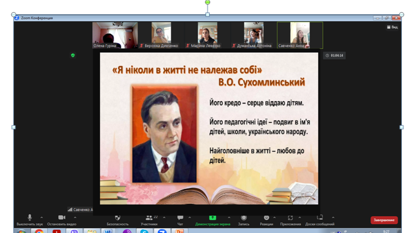 «Літературна спадщина гуманіста, мислителя та педагога Василя Сухомлинського» – тема виховної бесіди, проведеної професором кафедри економіки, менеджменту та фінансів Оленою Гуріною, присвяченої 105-й річниці з дня народження В. Сухомлинського.