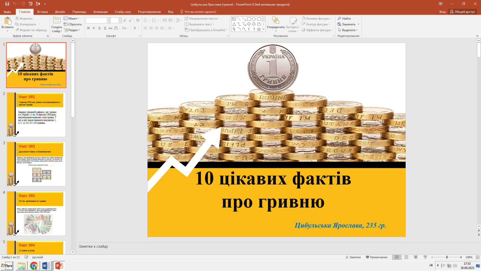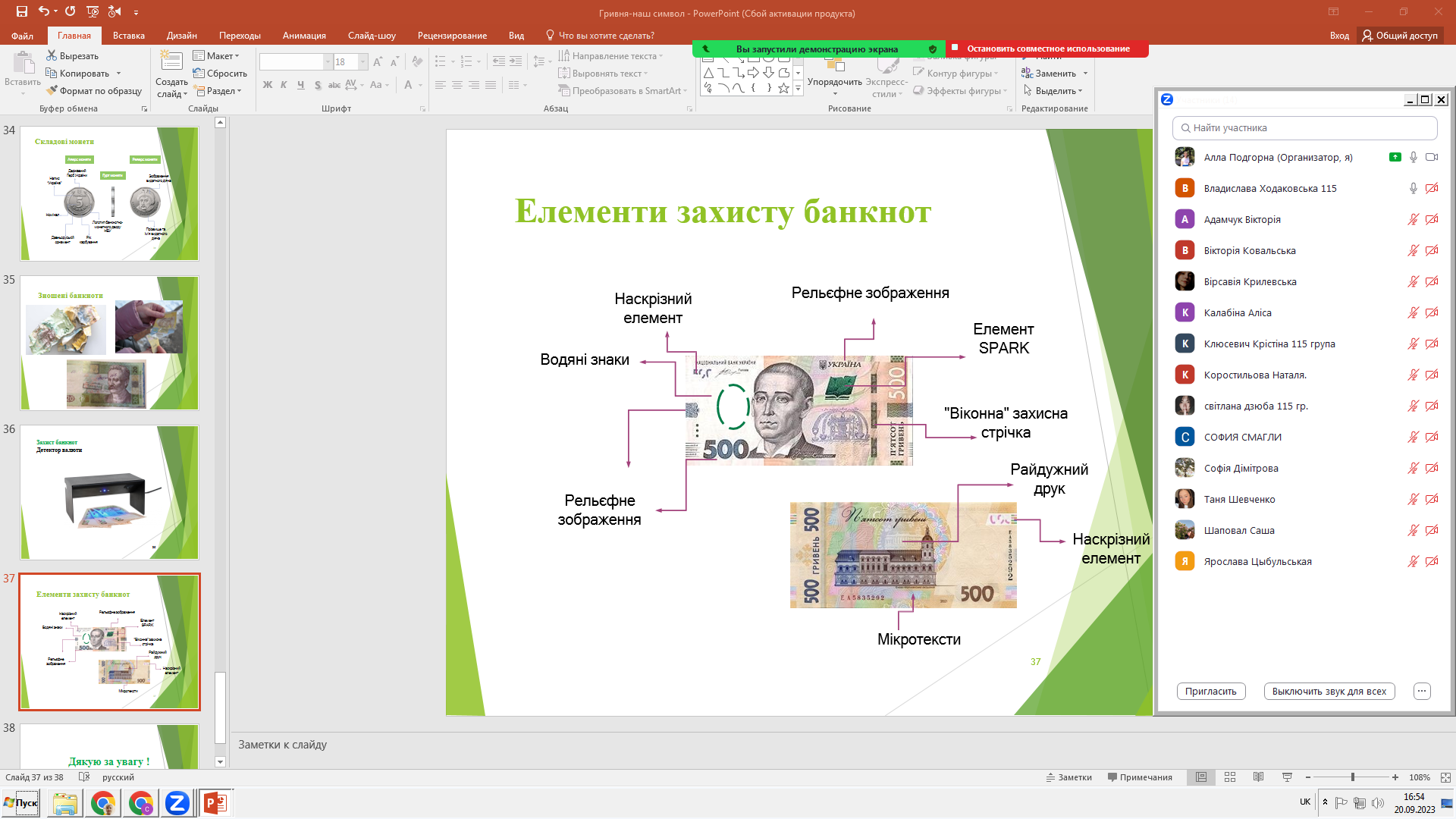 У межах святкування Дня народження української гривні, 20 вересня 2023 року викладачем фінансово-економічних дисциплін коледжу А.О. Подгорною проведено онлайн-захід для здобувачів освіти на тему «Гривня – наш символ!».