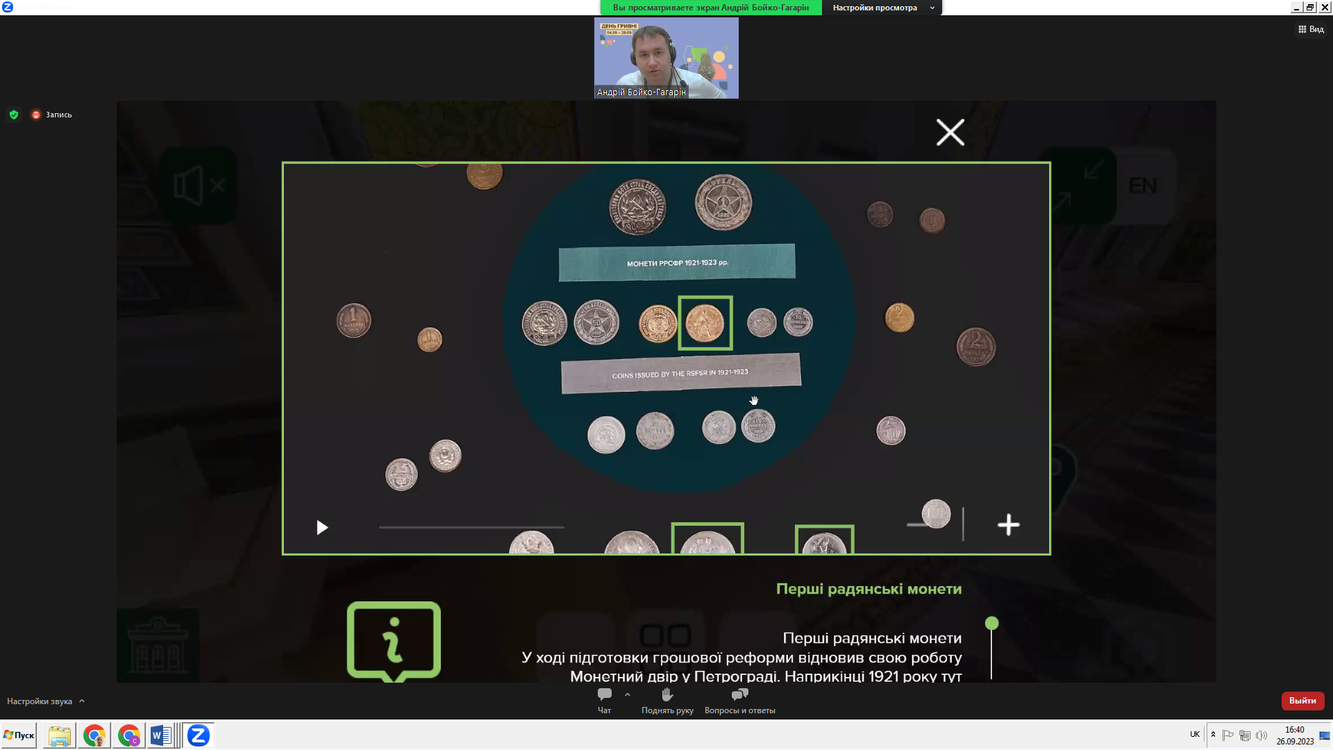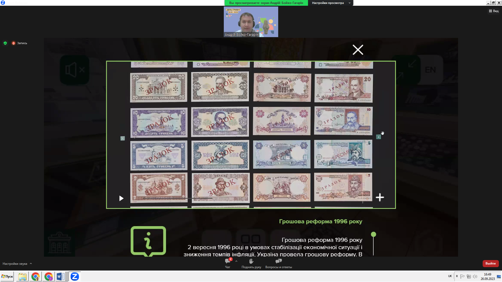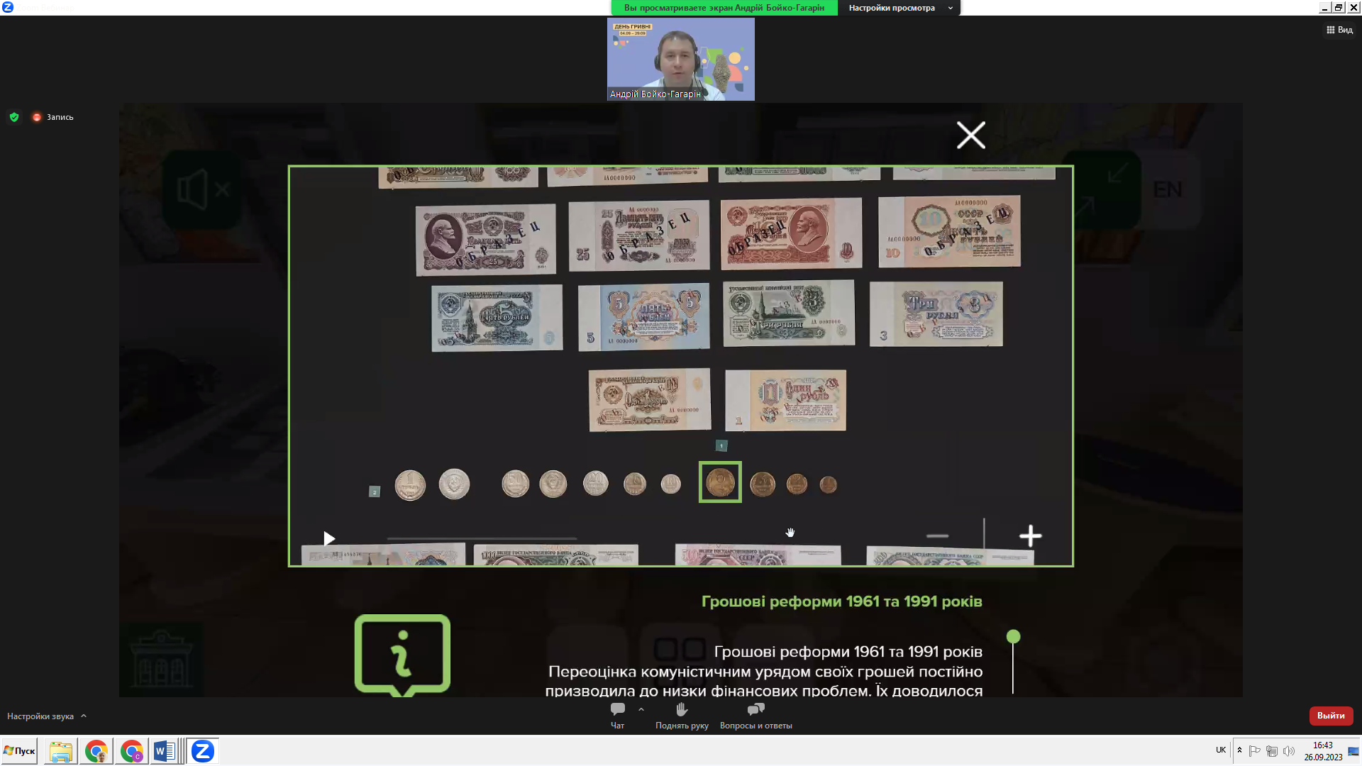 26 вересня 2023 року викладач фінансово-економічних дисциплін коледжу Подгорна А. О. відвідала віртуальний тур Музеєм грошей НБУ на тему «Історія грошового обігу в Україні: грошові реформи».