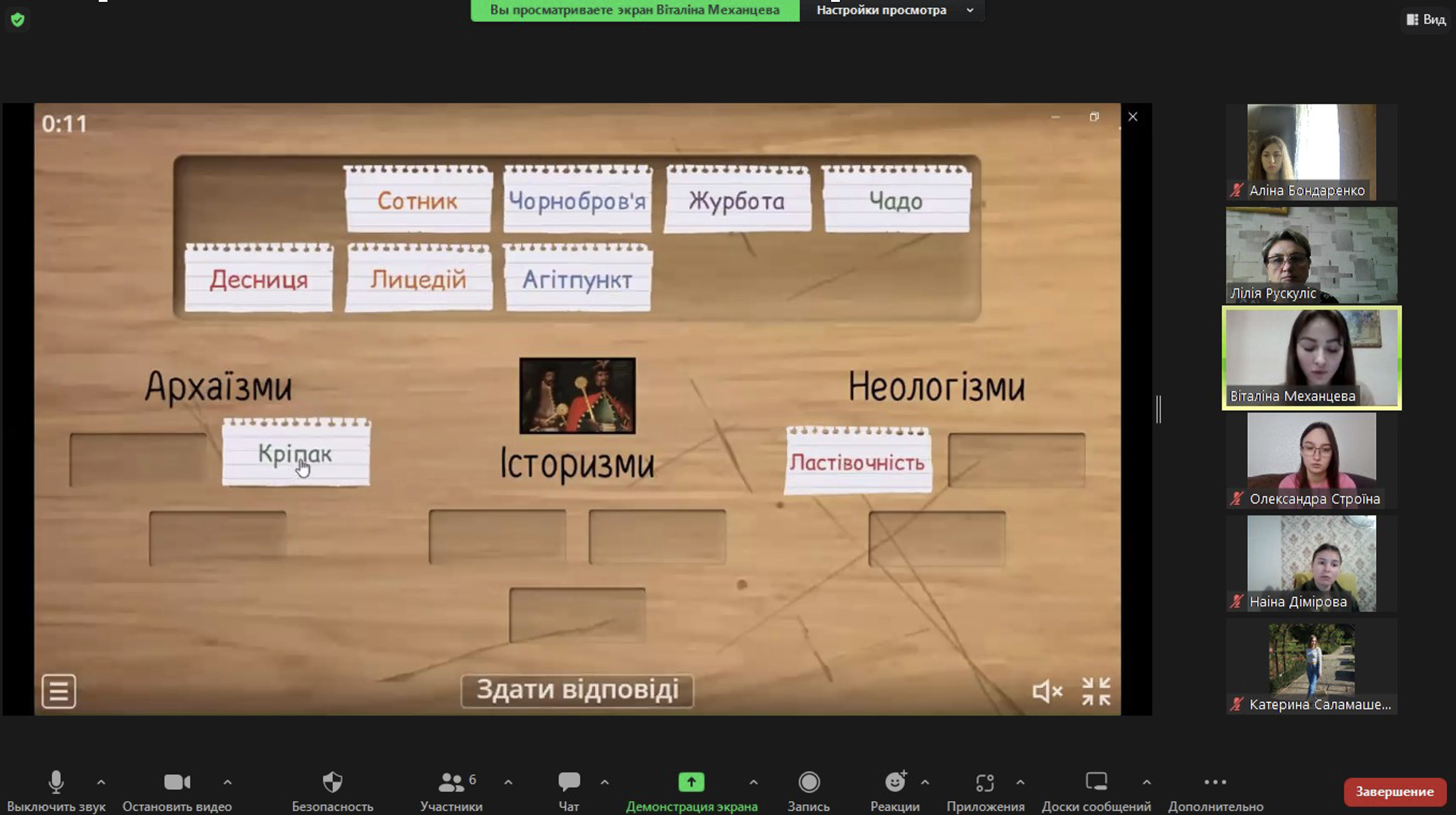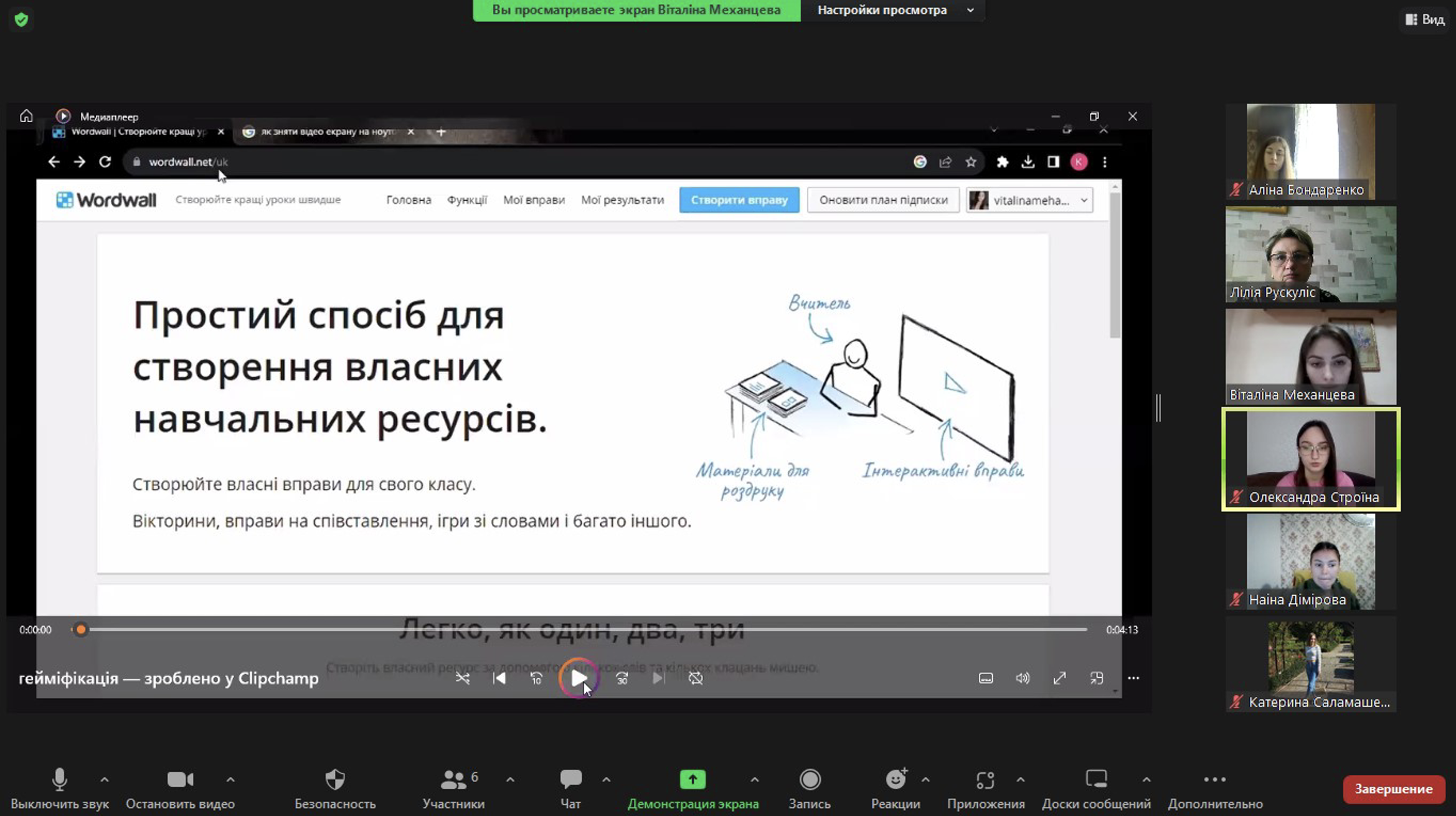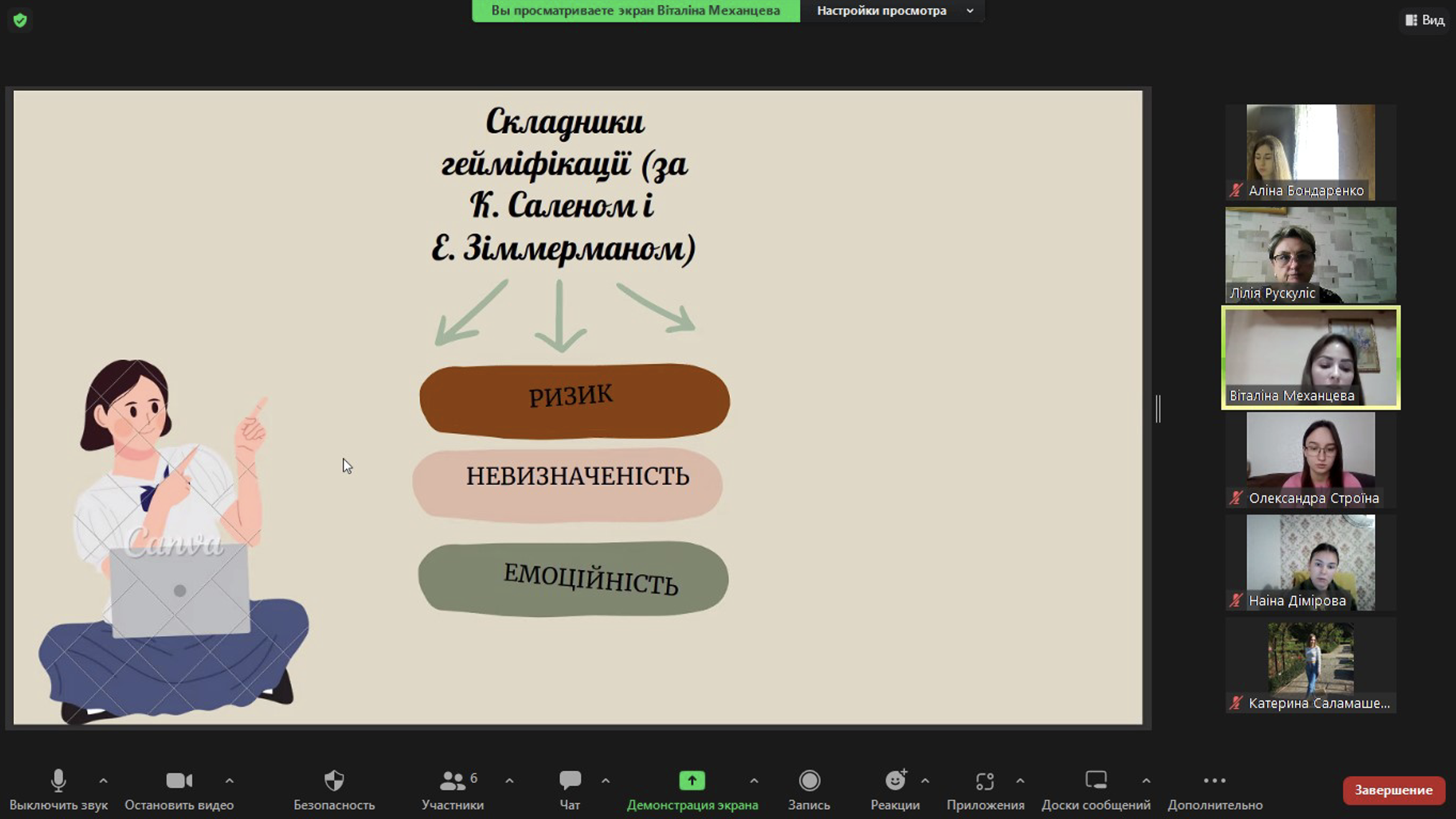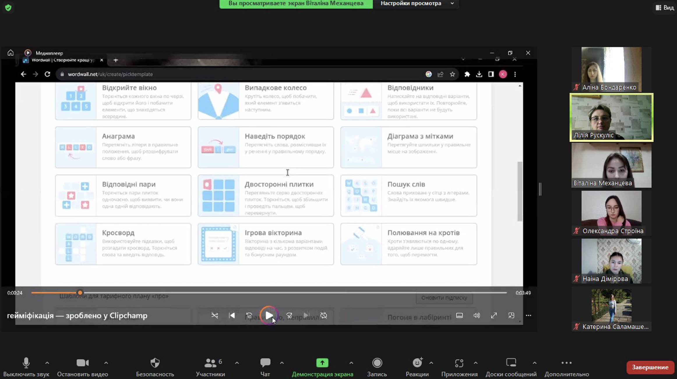 Під час виступу здобувачка освіти висвітлила поняття гейміфікації; охарактеризувала компоненти, складники й форми гейміфікованого процесу; продемонструвала приклади впровадження ігрових елементів під час вивчення лексики за допомогою платформи Wordwall.