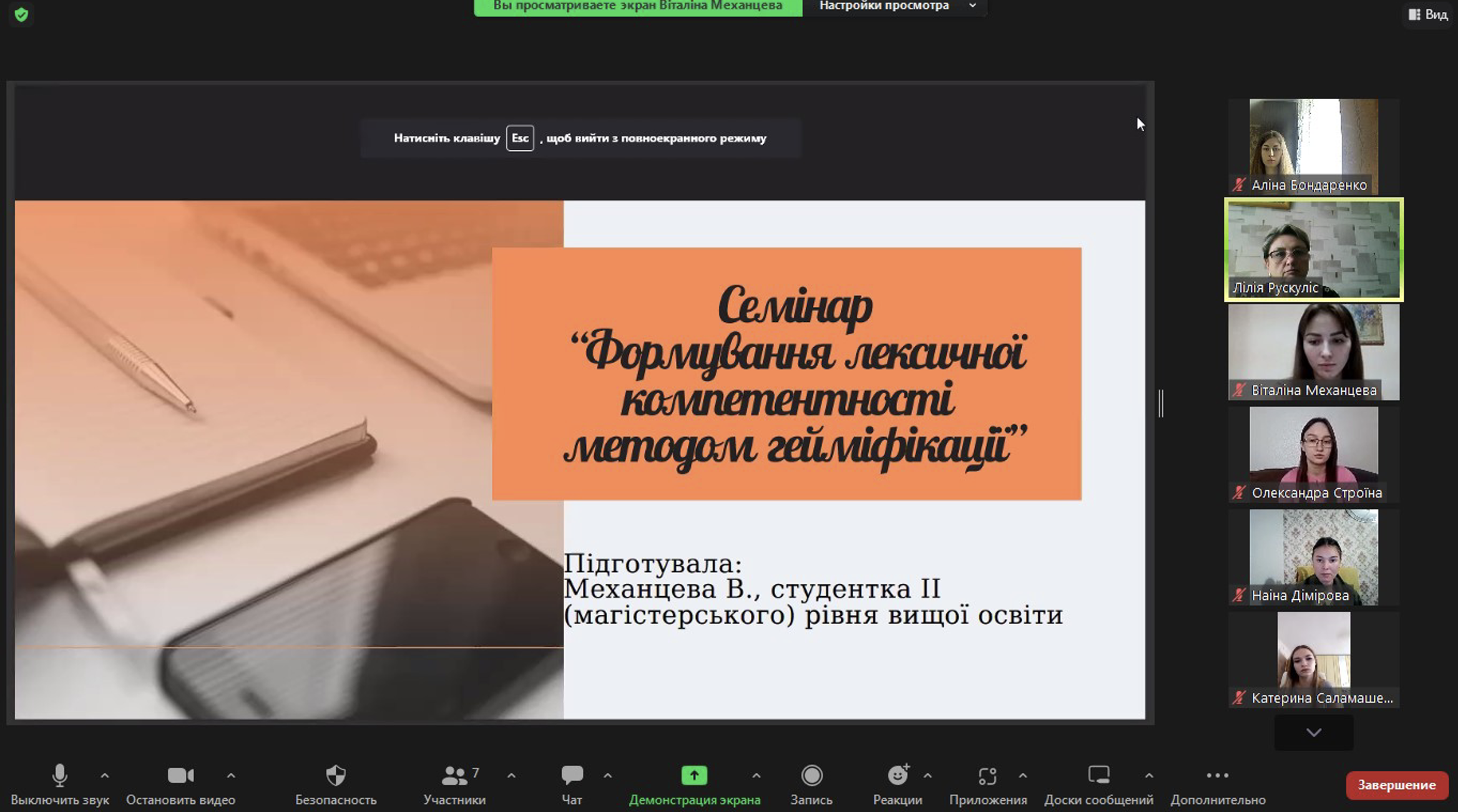 Механцева Віталіна, студентка ІІ (магістерського) рівня, проаналізувала особливості гейміфікації у контексті інформаційно-комунікаційних технологій навчання мови, представивши дослідження «Формування лексичної компетентності методом гейміфікації».