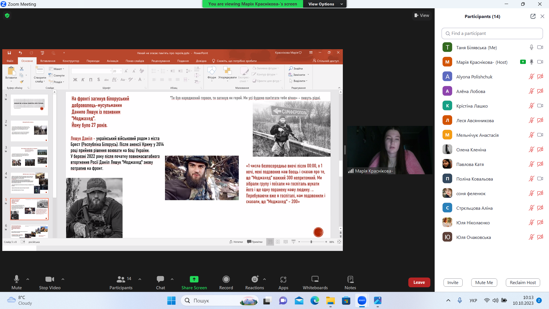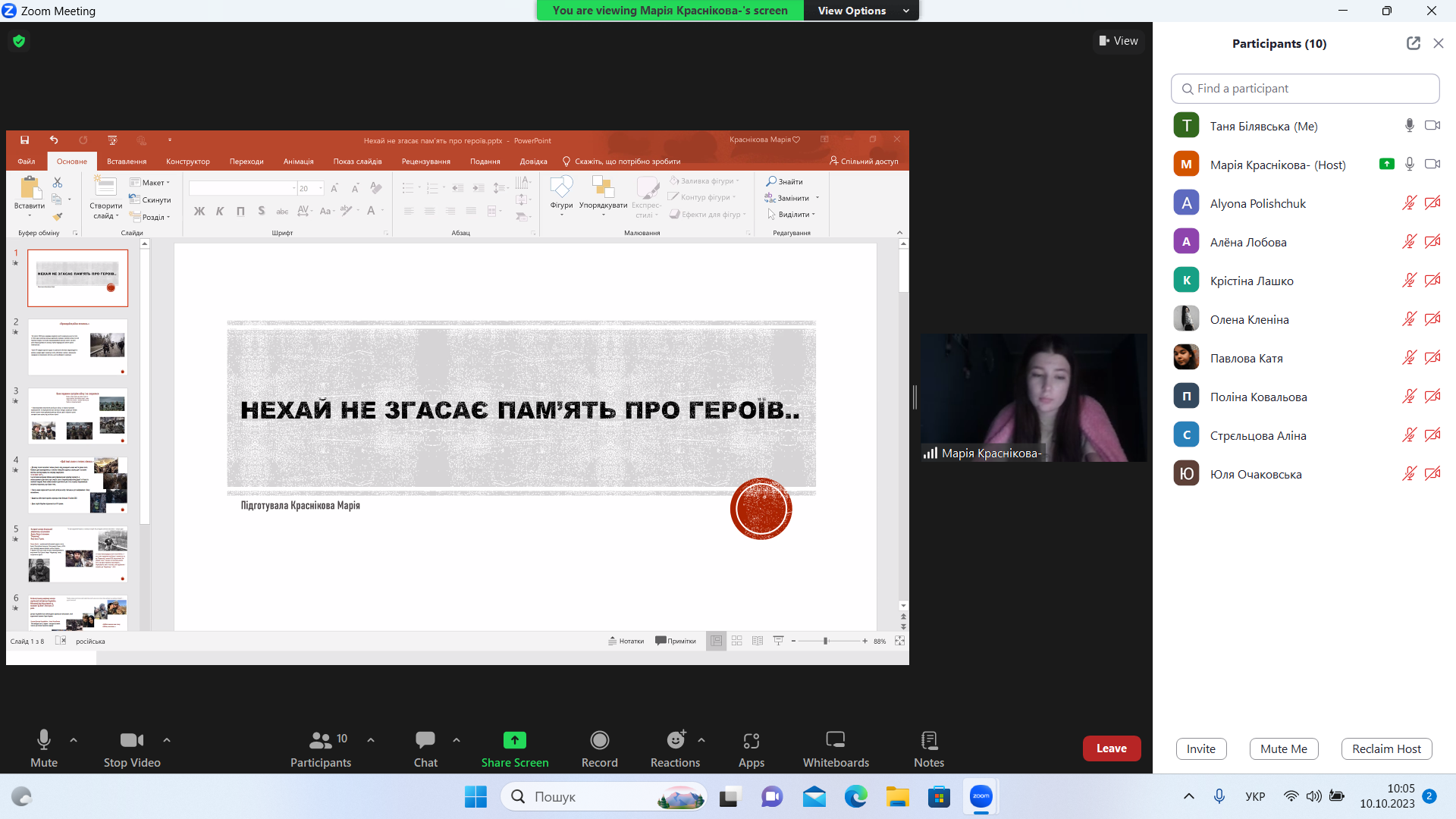Тема заходу: «Нехай не згасає пам’ять про героїв!» (керівник заходу – Білявська Т.М.). У межах заходу вшановано пам’ять українських захисників. Наголошено, що маємо один шлях – підтримка та зміцнення ЗСУ, звільнення від російського агресора всієї окупованої території нашої держави.