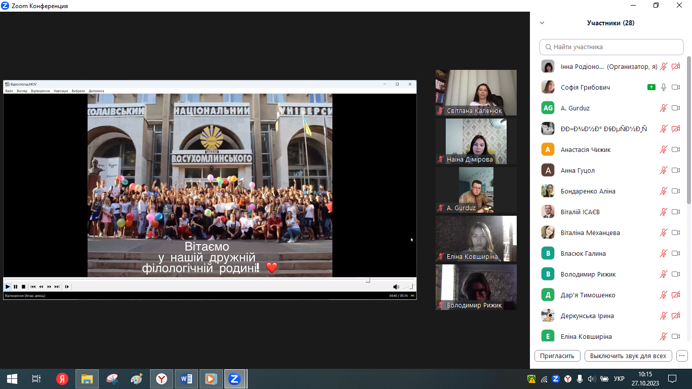 27 жовтня 2023 року на філологічному факультеті Миколаївського національного університету імені В.О. Сухомлинського відбулася посвята першокурсників спеціальності «Cередня освіта (Українська мова і література)».
