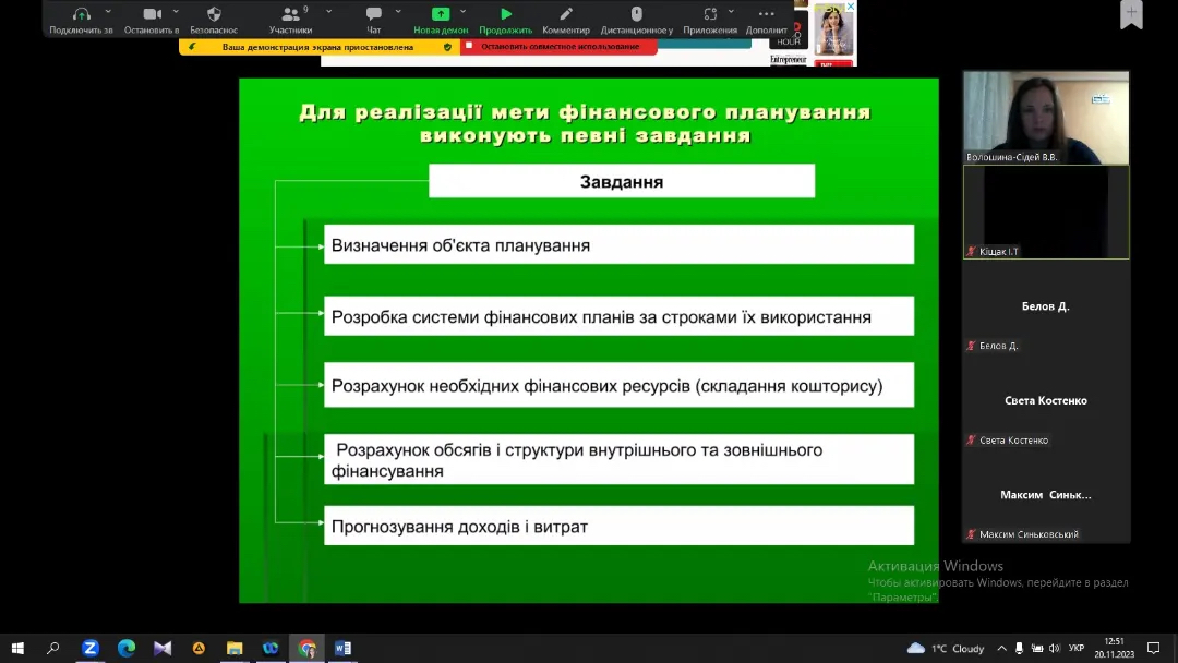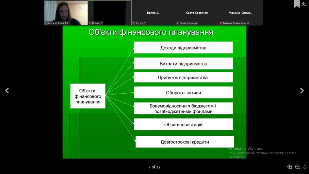 Заняття супроводжувалося прикладами конкретних практичних ситуацій, що дали змогу здобувачам на реальних прикладах фінансових планів підприємств детальніше вивчити проблемні питання теми.