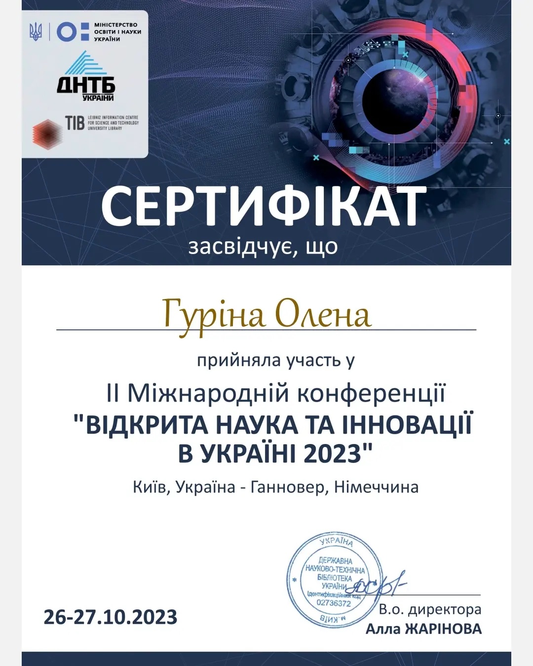 Викладачі кафедри економіки, менеджменту та фінансів: Данік Н.В., Гуріна О.В., Стройко Т.В., Рудь І.Ю., Волошина-Сідей В.В. взяли участь у другій Міжнародній конференції «Відкрита наука та інновації в Україні 2023», яка відбулася 26-27 жовтня 2023 року.