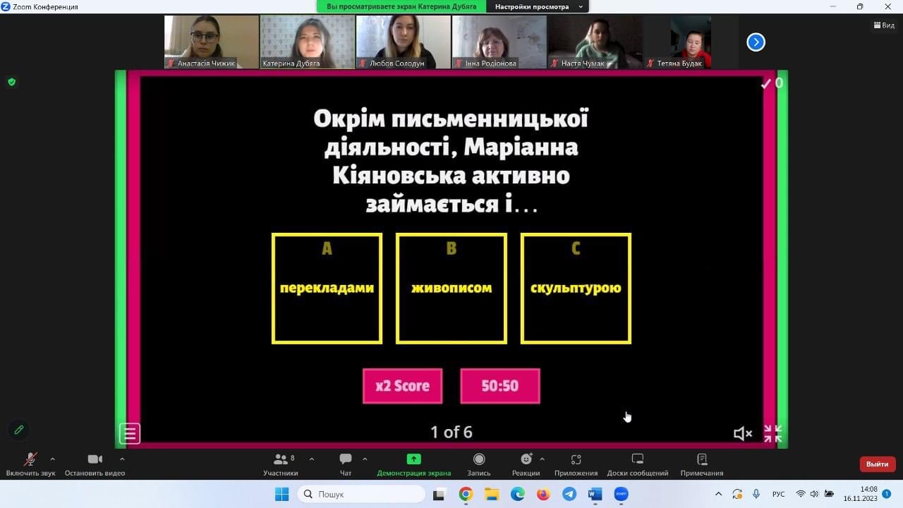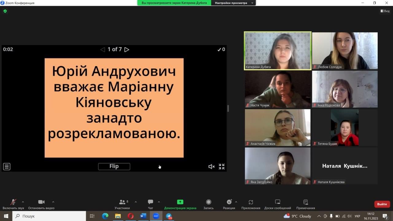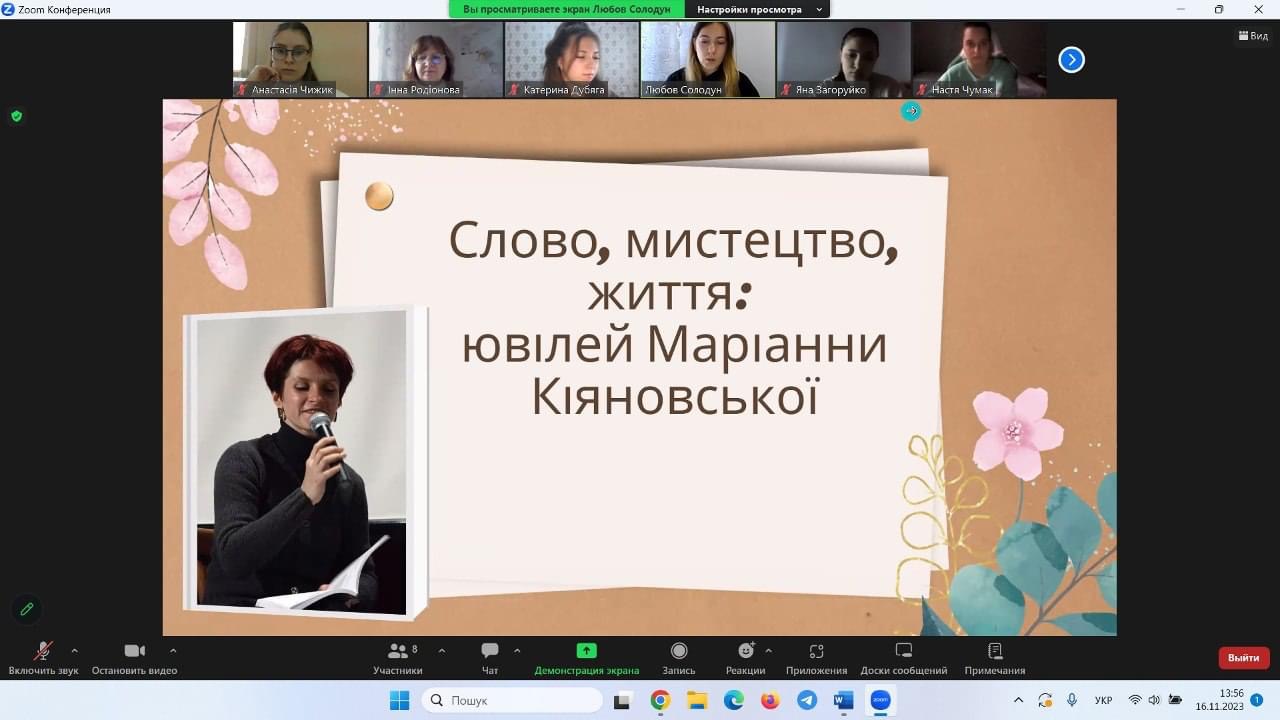 17 листопада студенти 6 курсу під час виробничої практики у закладах вищої освіти провели захід «Слово, мистецтво, життя: ювілей Маріанни Кіяновської» для студентів 4 курсу. Обговорили творчість відомої поетки, прозаїкині, есеїстки та перекладачки. Практиканти запропонували для студентів ігри та вікторини, слухали та аналізували читання поезій Маріанни Кіяновської.