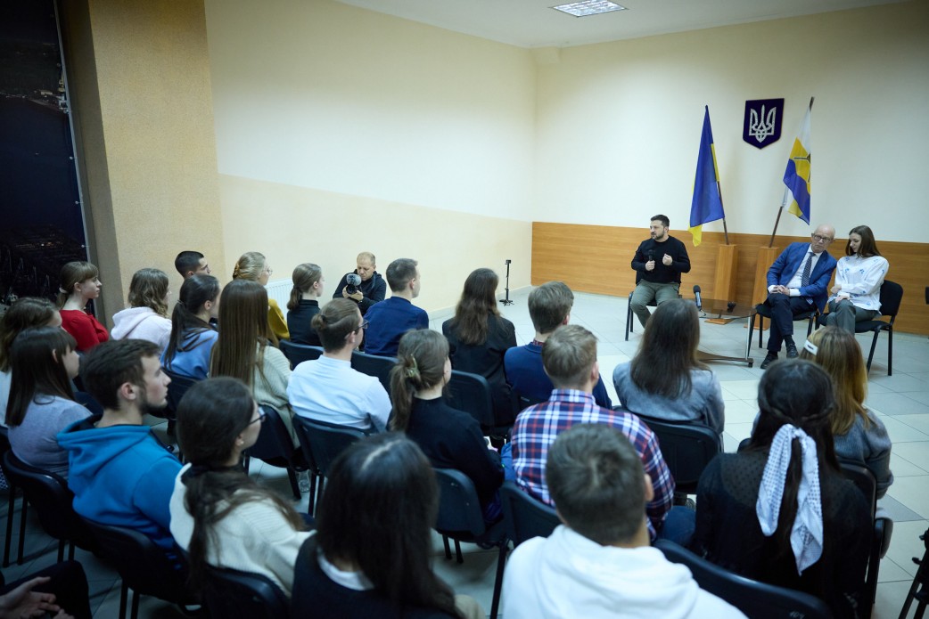 Володимир Зеленський під час робочої поїздки зустрівся зі студентами вищих навчальних закладів міста Миколаєва. Глава держави підкреслив, що йому приємно, що попри російську війну молодь залишається в Україні та здобуває тут вищу освіту.