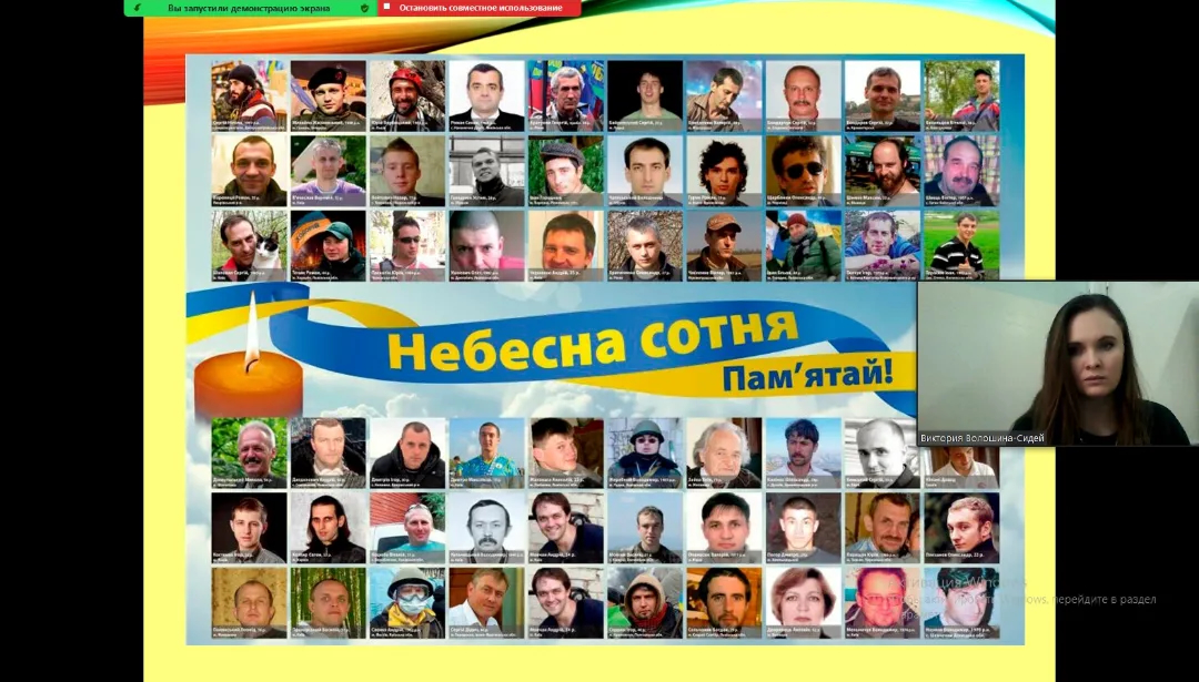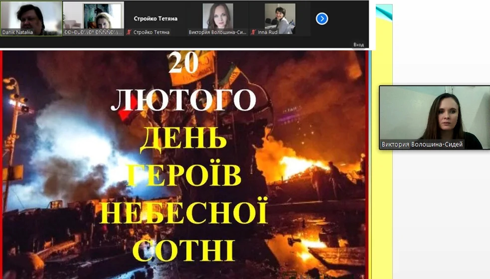 20 лютого в Україні відзначають День Героїв Небесної Сотні на знак вшанування відваги, сили духу і стійкості громадян, які загинули у Києві на Майдані, вулицях Грушевського та Інститутській, які віддали своє життя під час Революції Гідності, захищаючи ідеали демократії, відстоюючи права і свободи людини, європейське майбутнє України. Гинули за честь, за волю, за право бути народом, за країну, в якій не страшно жити і народжувати дітей. Всього під час Майдану постраждали 2,5 тисячі людей, більше 100 з них загинули. З метою вшанування пам’яті загиблих та формування свідомого ставлення і громадянської позиції здобувачів, на кафедрі економіки, менеджменту та фінансів, викладачем В.В. Волошиною-Сідей було проведено виховну годину, на якій поспілкувалися з приводу подій Майдану, впливу цих подій на подальшу долю України, переглянули відео-ролики про ці трагічні дні боротьби, що були переломними для новітньої історії України.