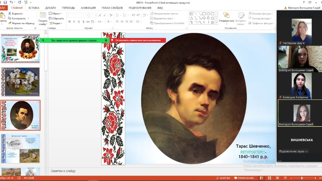 З нагоди відзначення 210-ї річниці від дня народження поета на кафедрі економіки, менеджменту та фінансів викладачем Волошиною-Сідей В.В. проведено виховну-зустріч зі студентами 4 курсу спеціальності 072 Фінанси, банківська справа та страхування. Під час зустрічі обговорили біографію митця, згадали значущі твори та їх роль у формування національної свідомої позиції українця в минулому і зараз, адже слово Кобзаря актуальне у всі часи.