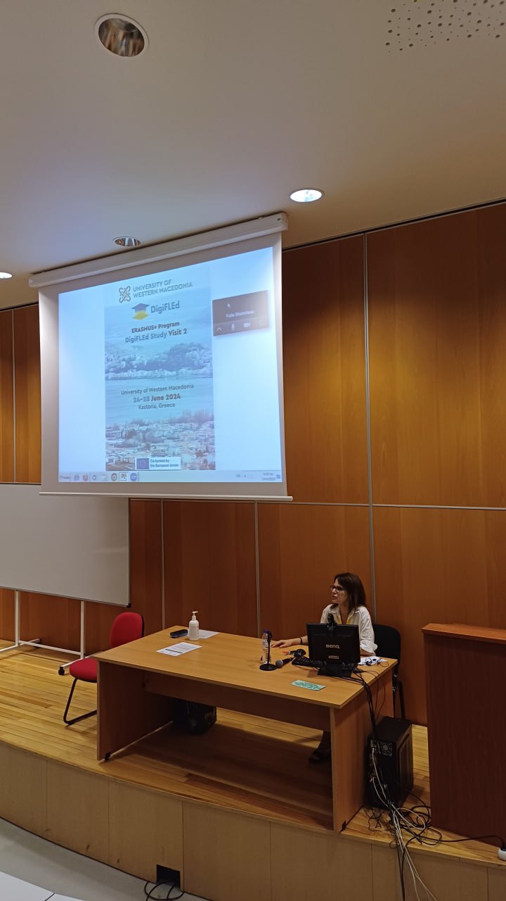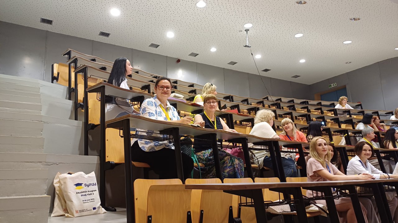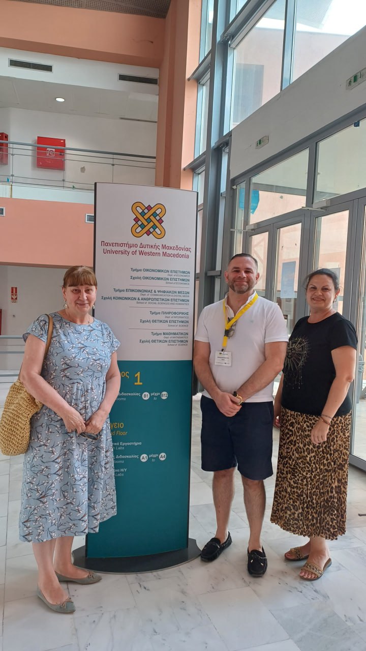 З 24 червня 2024 року представники кафедри германської філології МНУ імені В.О.Сухомлинського завідувач кафедри германської філології, доцент Тетяна Мироненко, доцент Леся Добровольська та старший викладач Ірина Шевченко взяли участь офлайн та онлайн у навчальному візиті до Університету Західної Македонії (м.Касторія, Греція) в рамках проєкту Еразмус+ КА2 DigiFLEd.