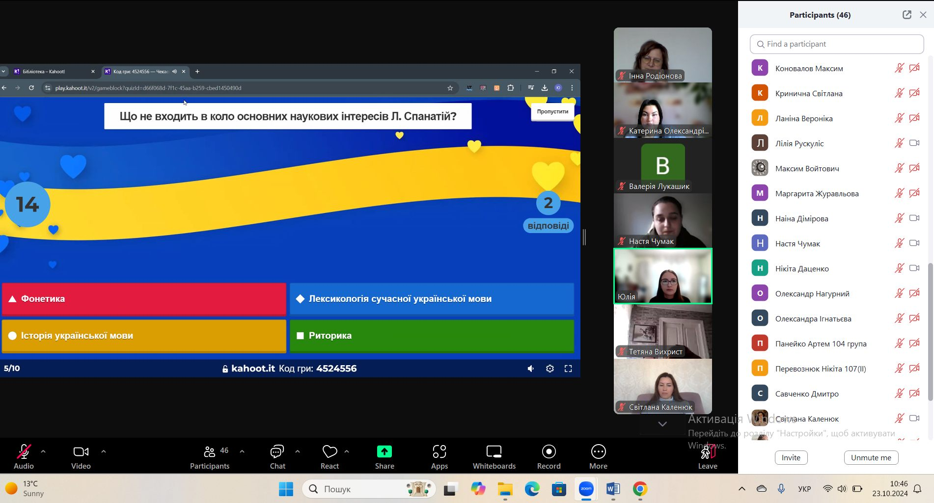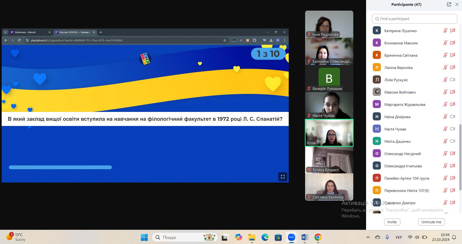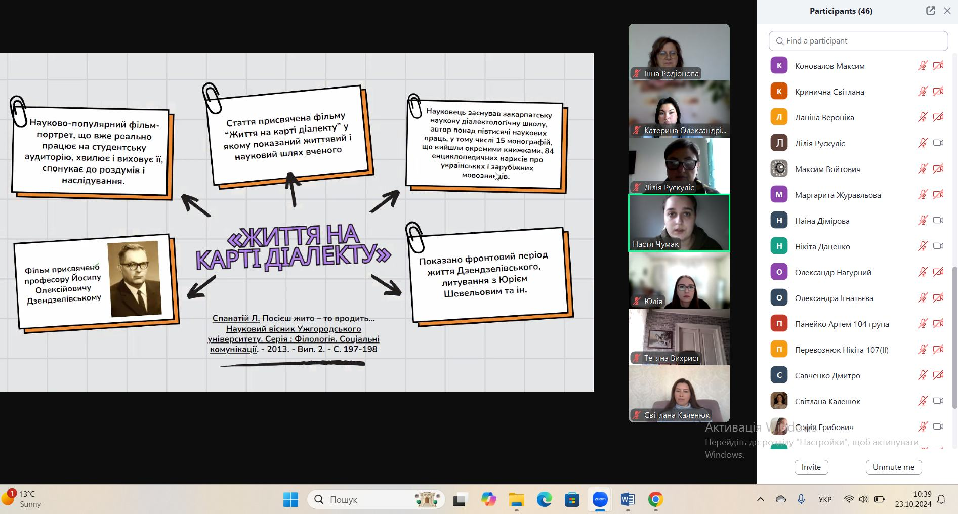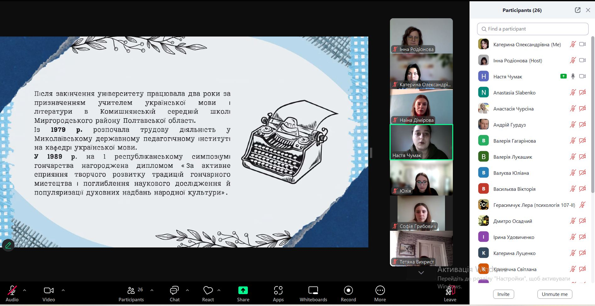 23 жовтня кафедрою української мови і літератури проведено чергове засідання дискусійного клубу «Корифеї філологічної думки МНУ імені В. О. Сухомлинського». Говорили про мовознавчий доробок кандидатки філологічних наук, доцентки Любов Степанівни Спанатій.