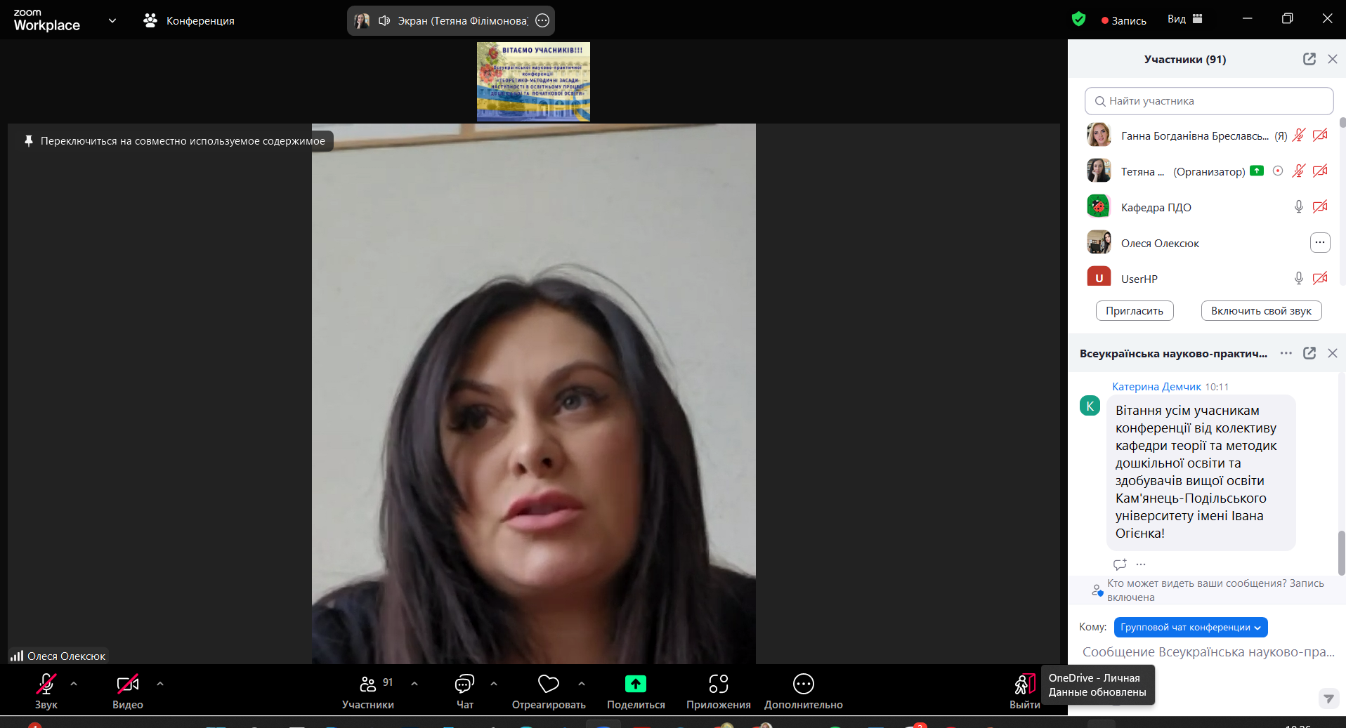 На початку конференції з вітальним словом до присутніх звернулися представники освіти: А. Б. Веліховська, директор департаменту освіти і науки Миколаївської обласної державної адміністрації, к. п. н., доц.; Є. Г. Горбуров, депутат Миколаївської обласної ради, голова постійної комісії з науки та освіти, інновацій, молоді, сім’ї та спорту, культури та духовності, к. іст. н., доц.; Н. В. Михальченко, проректорка з науково-педагогічної роботи МНУ імені В. О. Сухомлинського, к. псих. н., доц.; О. М. Олексюк, деканеса педагогічного факультету МНУ імені В. О. Сухомлинського, к. філол. н, доц.