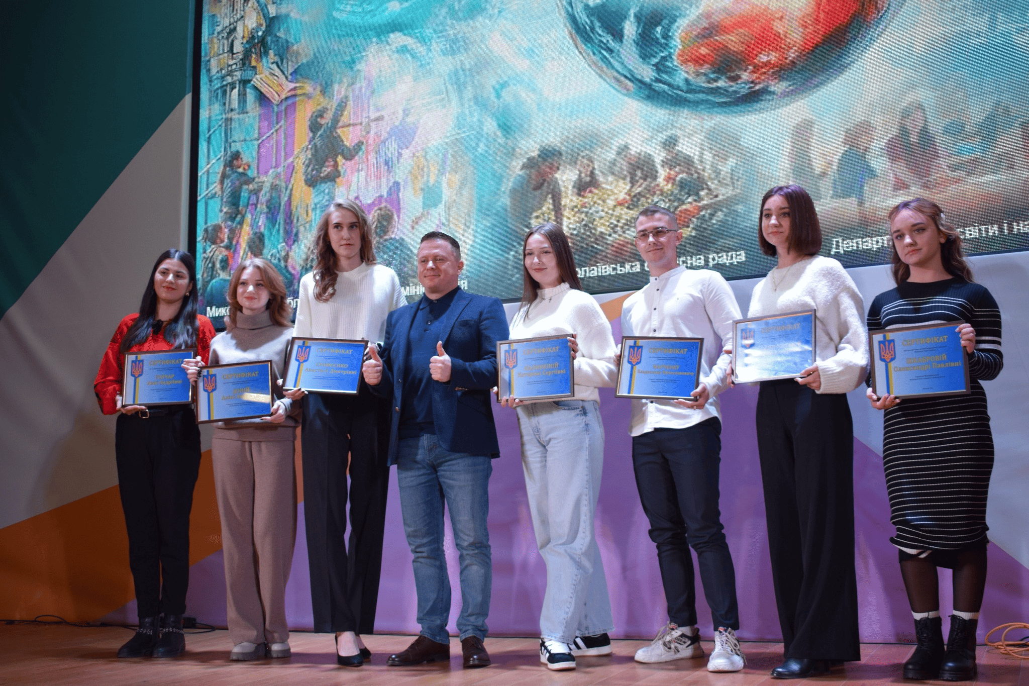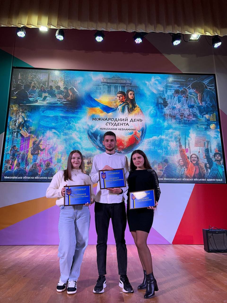 Гості свята відзначили найкращих студентів Миколаївщини, серед яких і здобувачі освіти Миколаївського національного університету імені В. О. Сухомлинського, вручивши сертифікати про призначення іменних академічних стипендій Президента України (студентам філологічного факультету: Софії Грибович і Володимиру Рижику); Верховної Ради України (студентці філологічного факультету Катерині Калинкіній та студенту природничого факультету Андрісу Рускулісу).