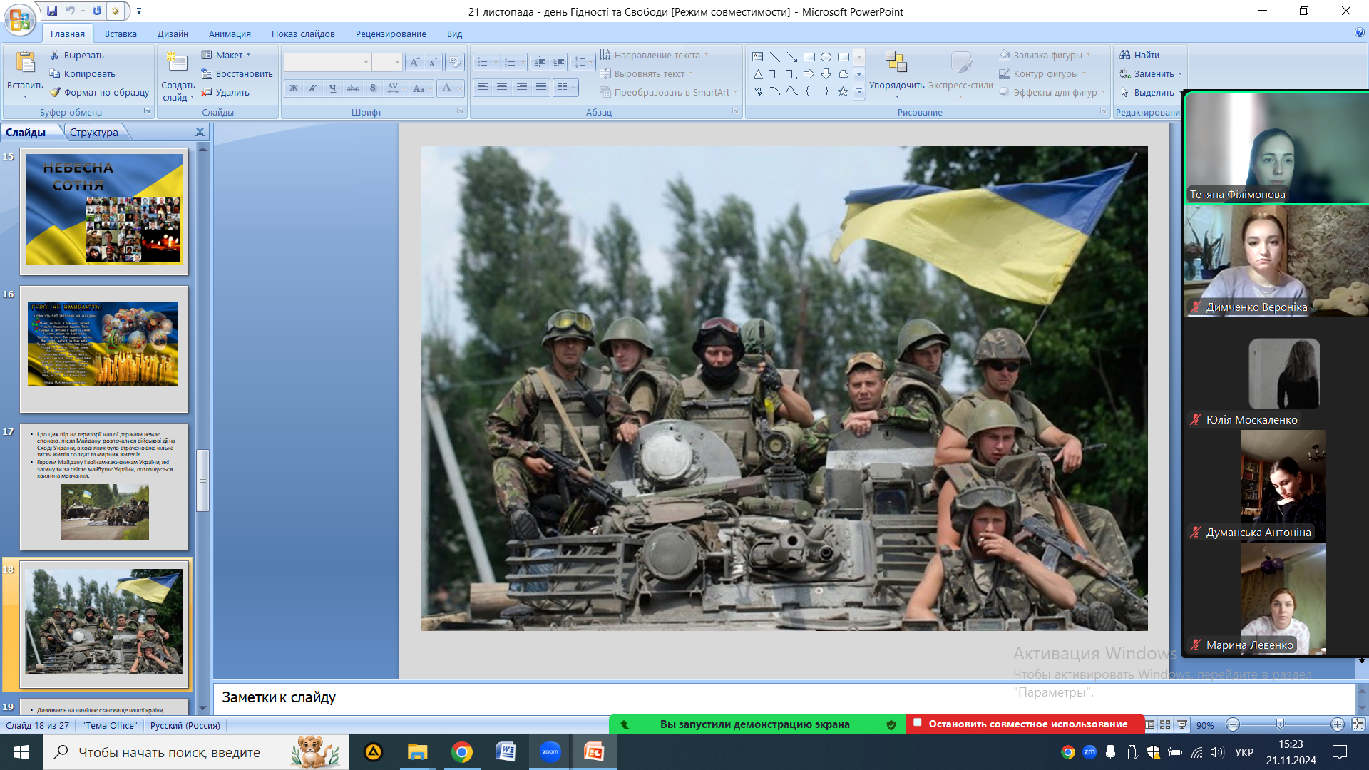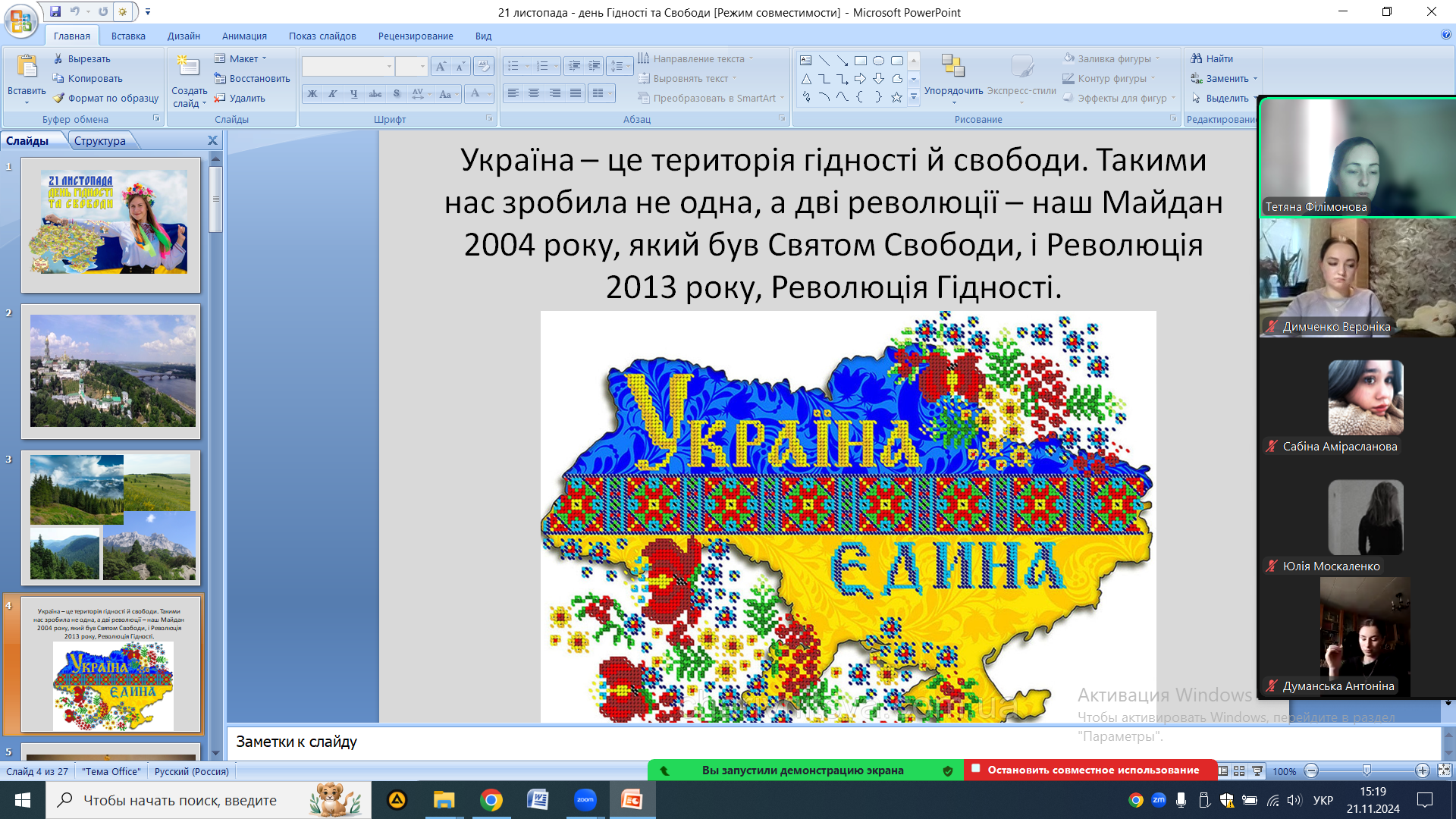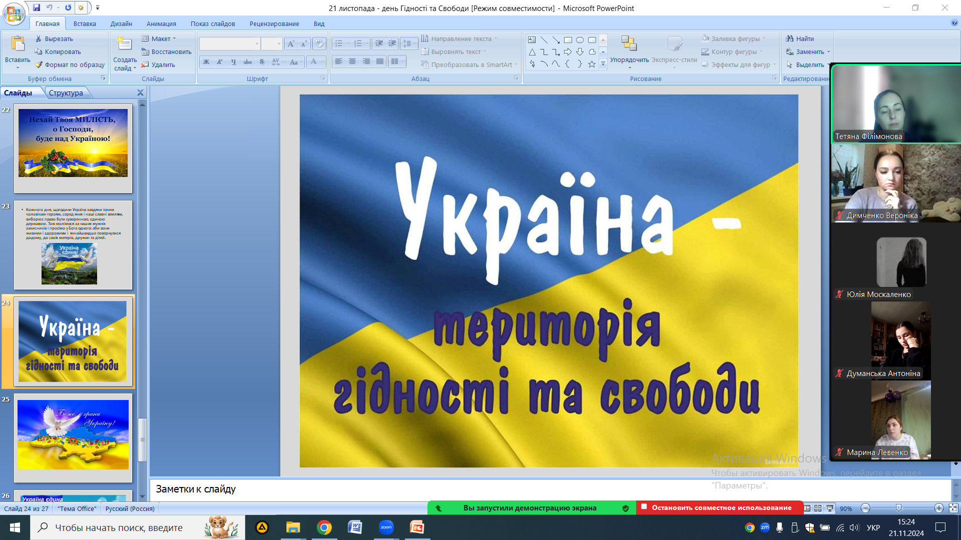21 листопада 2024 р. к.пед.н., доцентом кафедри початкової та дошкільної освіти Філімоновою Т.В. проведена кураторська година зі студентами 3 курсу спеціальності 013 Початкова освіта – «День Гідності і Свободи».