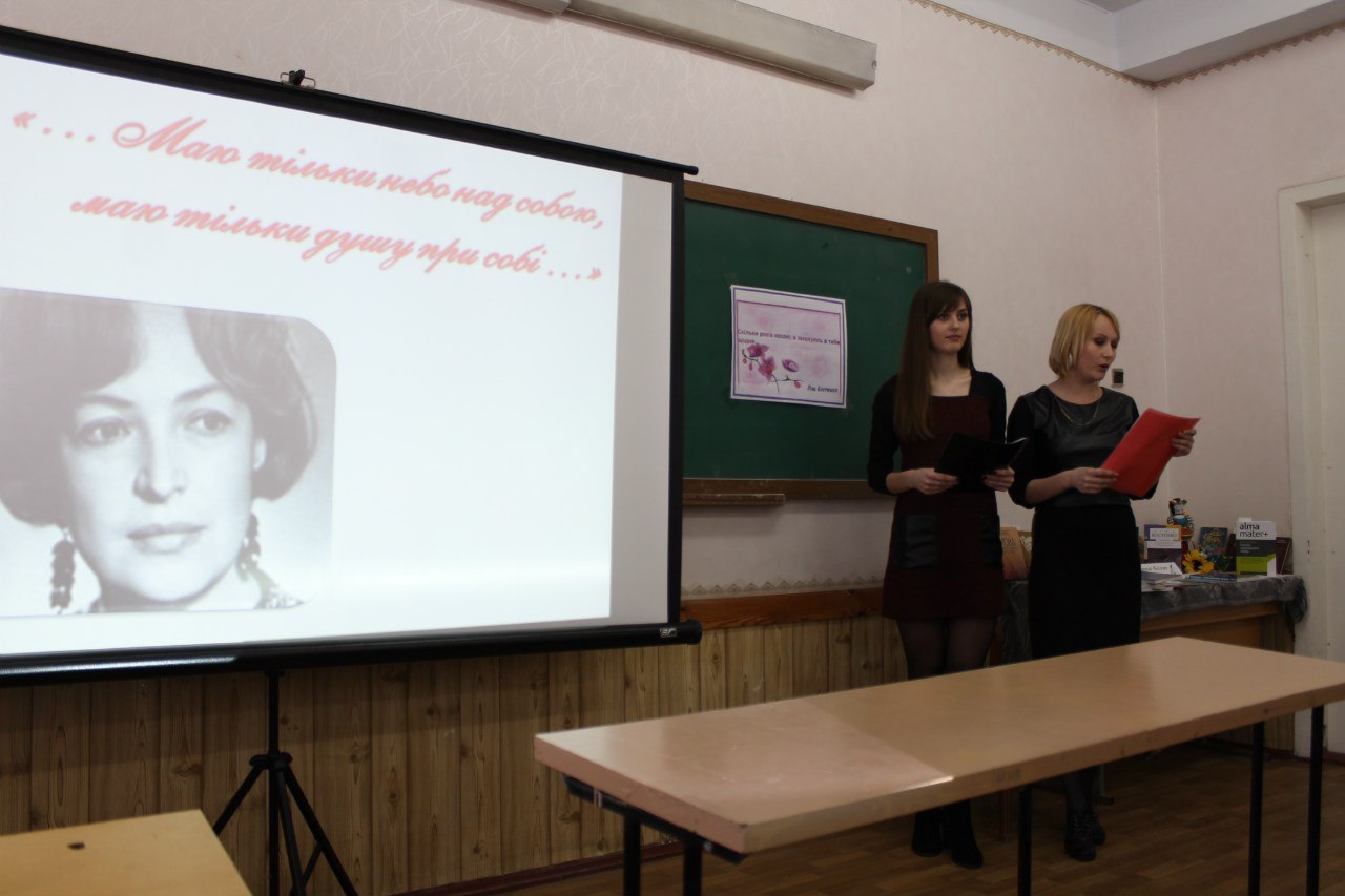 Представник Наукової бібліотеки університету М. Ю. Трощенкова представила книжкову виставку Ліни Костенко. Учасники та гості літературної вітальні декламували улюблені поезії поетеси і власні вірші. Інтерв’ю з живою легендою української літератури дало студентам значну поживу для роздумів над проблемами сучасності. Родзинкою свята стала музична композиція на слова Ліни Костенко, виконана Ольгою Стеценко, а яскраве завершення зустрічі забезпечив талановитий сольний спів Ірини Смутченко.