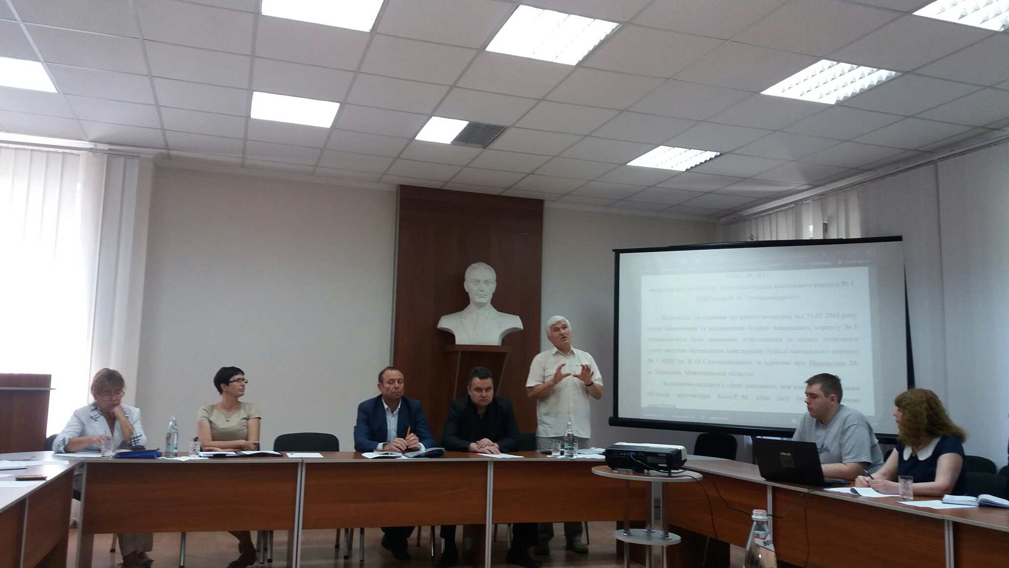 8 червня 2016 р. за круглим стом в Миколаївському національному університеті імені В. О. Сухомлинського зібралися адміністрація університету, керівник комунального підприємства Миколаївської міської ради «Капітальне будівництво м. Миколаєва» О. М. Кальченко, керівник підрозділу охорони культурної спадщини Управління з питань культури та охорони культурної спадщини Миколаївської міської ради О. А. Бондаренко, депутат міської ради О. В. Крисенко, експерт у сфері діяльності пов’язаної зі створенням об’єктів архітектури Р. М. Біла, доцент кафедри історіографії та джерелознавства ННІ історії, політології та права О. П. Хаєцький з приводу обговорення можливостей збереження та відновлення будівлі навчального корпусу №3 університету, що знаходиться наразі в аварійному стані.