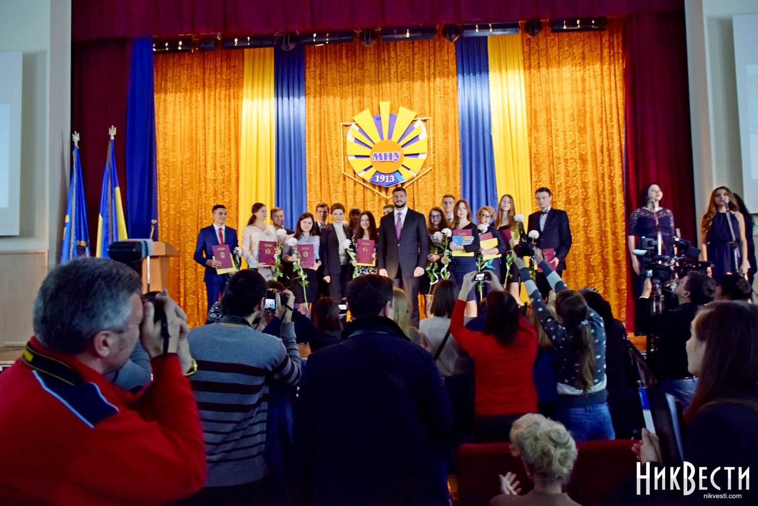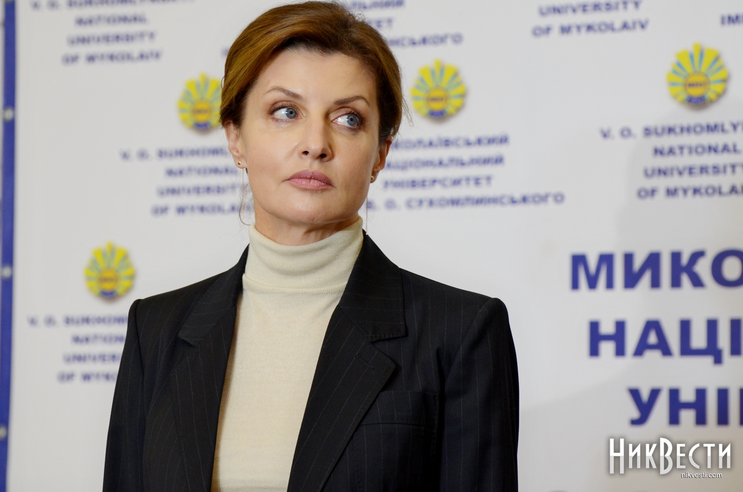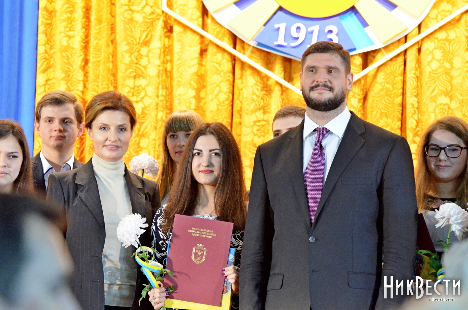 Пані Марина Порошенко разом із головою Миколаївської обласної державної адміністрації Олексієм Савченком нагородили почесними грамотами студентів за активну участь у громадському житті Миколаївщини, значні досягнення у навчанні та культурно-мистецькій діяльності та з нагоди Міжнародного дня студента.