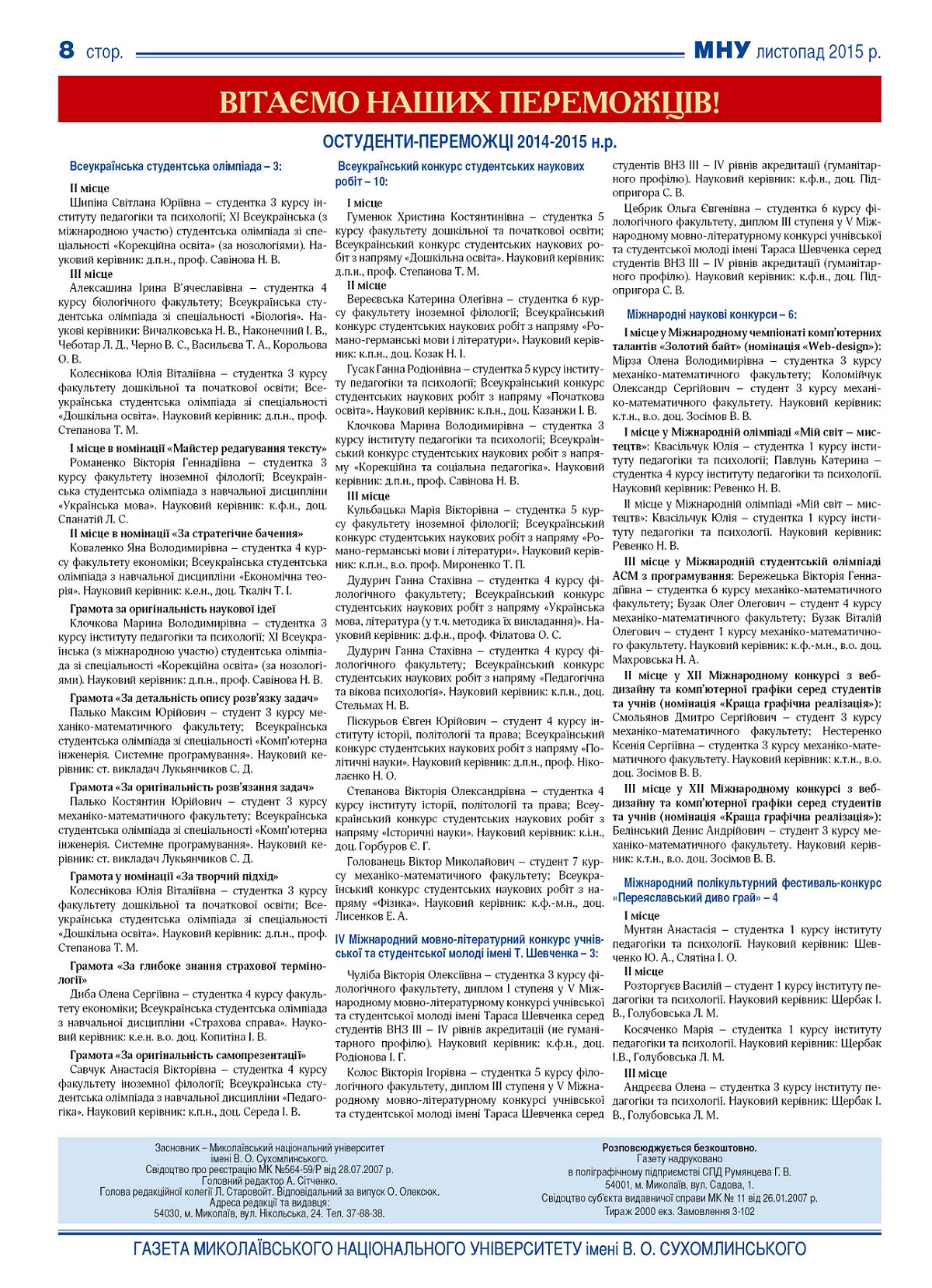 Газета №1 від листопада 2015 р.