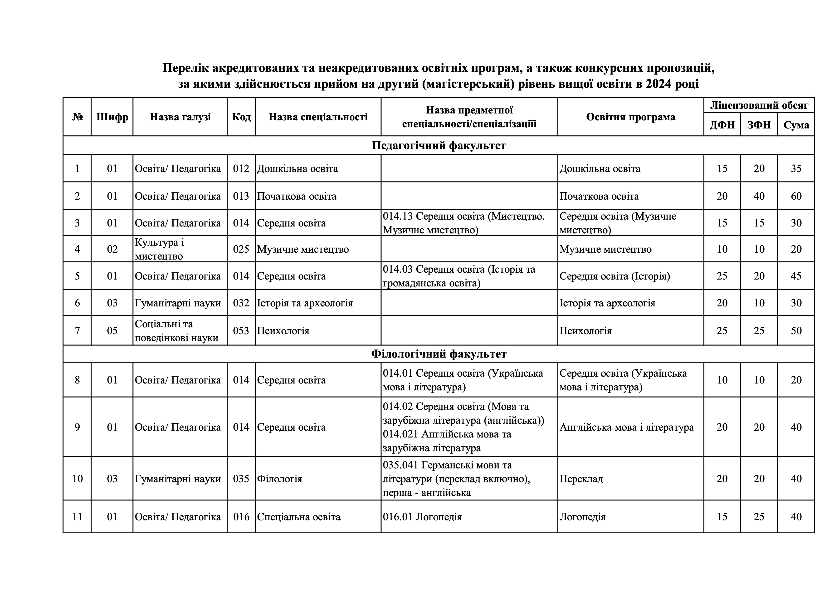 Також звертаємо увагу на те, що для вступу до магістратури на основі освітнього ступеня бакалавра (і на бюджет і на контракт) на спеціальності 025 Музичне мистецтво, 032 Історія та археологія, 035.041 Філологія (Германські мови та літератури (переклад включно), перша – англійська) необхідно складати єдиний вступний іспит з іноземної мови (ЄВІ) та фахове вступне випробування (фахове складається в університеті). Якщо вступник вже має освітній ступінь магістра (освітньо-кваліфікаційний рівень спеціаліста), то для вступу на контракт на спеціальності 025 Музичне мистецтво, 032 Історія та археологія, 035.041 Філологія (Германські мови та літератури (переклад включно), перша – англійська) замість результатів ЄВІ можна скласти індивідуальну усну співбесіду з іноземної мови.